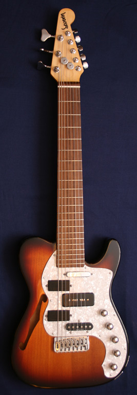 Jeg har tidligere ombygget to af Nils’s klassiske guitarer til 8 strenge - se nedenfor. I sommeren 2008 bestilte han så denne el-guitar. Det har været en meget spændende proces at samarbejde med Nils om guitaren. Mange skitser, afprøvninger, kopper kaffe, tilretninger og endelig er guitaren færdig. Med Nils’s egne ord: